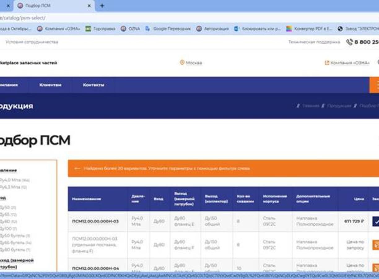 Выбрать можно по нескольким параметрам: Давление, Ду на входе и на выходе (как через патрубок, так и через коллектор), количество скважин, исполнение корпуса, дополнительные опции (наплавка, сероводородное или полнопроходное исполнение  и т.д.). результат отбора тут же демонстрируется в таблице справа и одним кликом можно сразу отправить нужный вам вариант в корзину и продолжить покупки. Есть возможность запросить цену при необходимости. При возникновении вопросов можно позвонить по бесплатному номеру 8 800 250 21 01 или задать  вопрос в чате.
