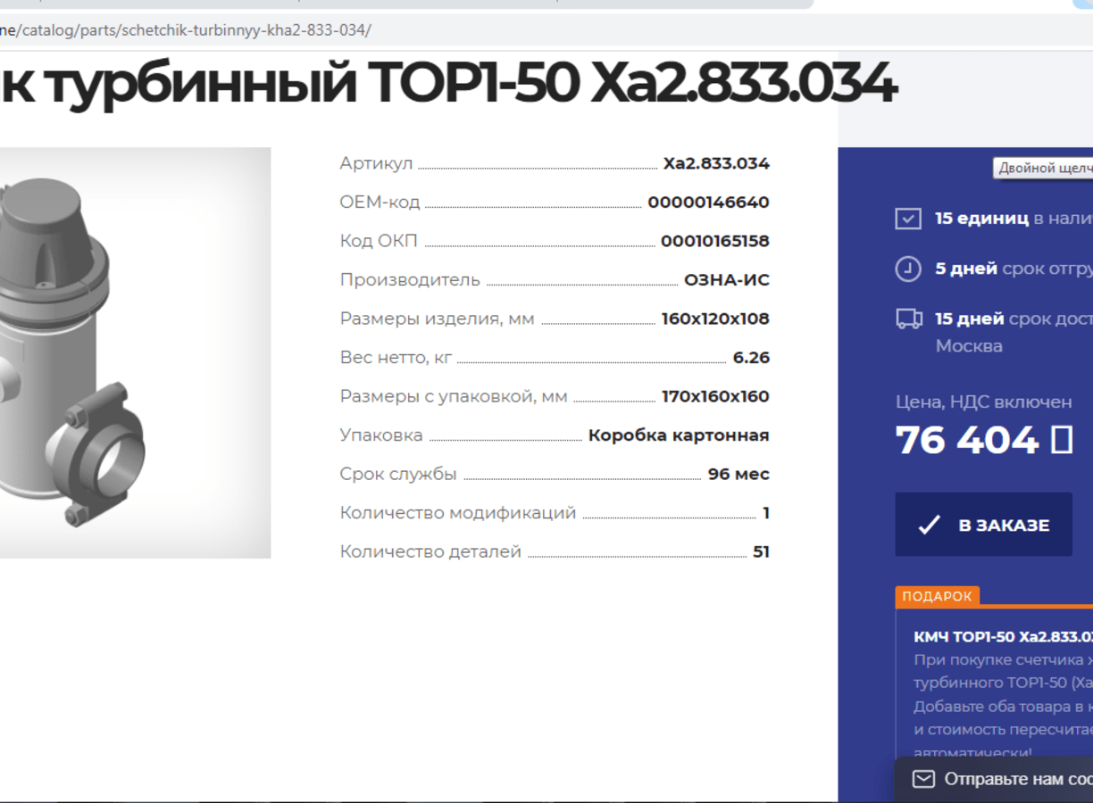 Только до конца лета, 31.08.2022 года при покупке на Маркет плейс счетчика жидкости турбинного ТОР1-50 (Ха2.833.034) https://ozna.online/catalog/parts/schetchik-turbinnyy-kha2-833-034/ комплект Ха2.833.034 КМЧ https://ozna.online/catalog/parts/schetchik-turbinnyy-kha2-833-034/kmch-tor1-50-kha2-833-034/, включающий в себя ответные фланцы и крепеж в подарок!